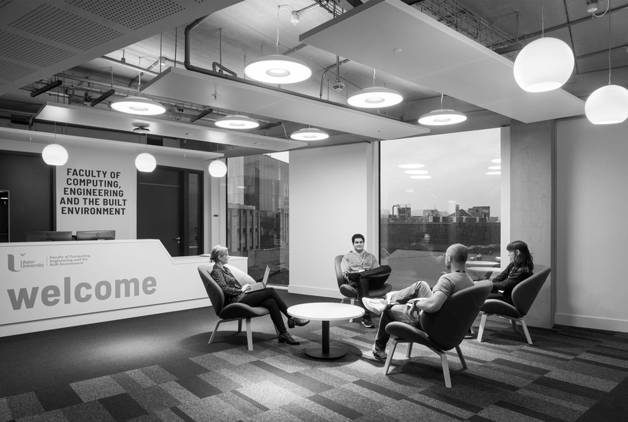 Кампус Ulster University является отличным примером взаимодействия университетского комплекса с городским контекстом. При помощи архитектуры, сочетающей в себе привычные кирпич и стекло, но, вместе с тем, имеющей необычный динамичные фасады, кампус органично встраивается в структуру города, при этом не растворяясь в ней.