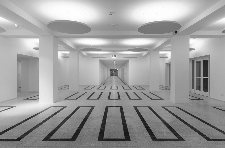 За счет использования ландшафта, уличные общественные пространства оказываются органично вплетены в архитектуру корпуса.