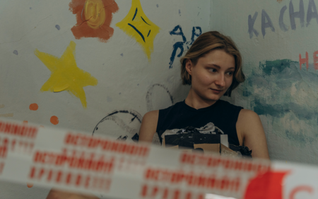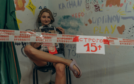 Кроме того, я создала инсталляцию на тему уязвимости и боли. За первое ощущение отвечает скотч, предостерегающий о хрупкости человеческой души и ее гибкости при подстраивании к другому человеку. Воткнутые иголки и булавки в оранжевый, теплый скотч и мою одежду, стали символом болезненности, которую может доставить близкий человек.