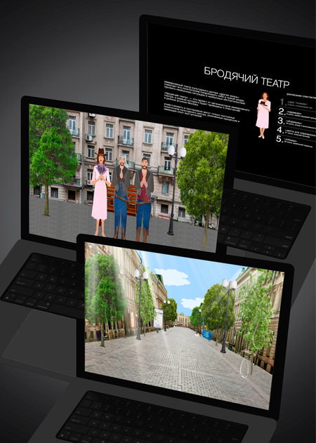 нас встречают пять персонажей пяти разных постановок, которые будут сыграны на улицах и во дворах разных уголков москвы