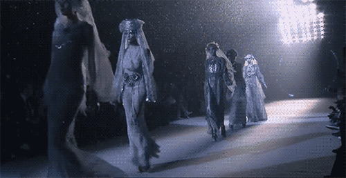 Если мы взглянем на коллекции и творения например Маккуина, которые создавались как раз до и после бума на героиновый шик, то сможем разглядеть некую закономерность, что, несмотря на достаточно тонкие, однообразные и высокие тела у девушек, дизайнер продолжает ссылаться на анатомическое женское тело и после тренда на истощение. То есть при всей худобе, творец не стремиться обесполить моделей, сделать их невидимыми с точки зрения гендера, даже если это будет перфоманс, где они не должны быть живыми либо узнаваемыми. Маккуиновские показы раскрывают и продолжают тенденцию на худобу, но при этом не отказываются от гендерных рамок, и не стараются сделать из женщин оммаж на мужчин.