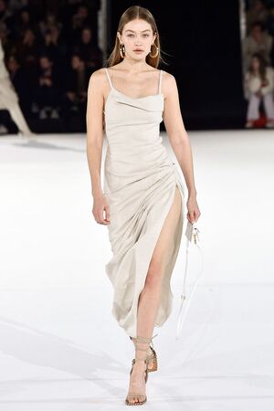 Слева GiGi Hadid для Jacquemus Fall, 2020 Справа Момент, где мать ДжиДжи, Иоланда, разговаривает с ней по телефону