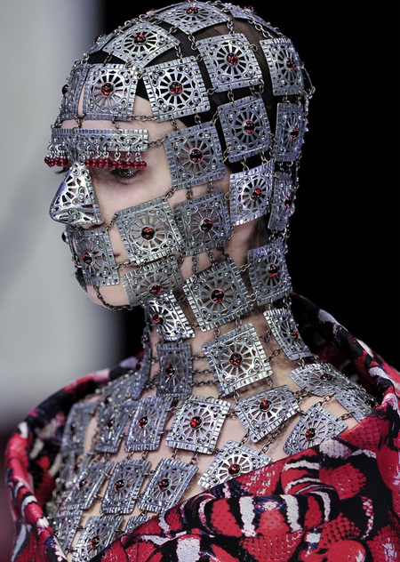 Для полного понимания необходимо знать, что большинство дизайнеров выбирают манекенщиков под себя. Кто-то предпочитал делать из моделей фигуры все-таки приближенные к человеку (яркий макияж, открытое лицо), и демонстрировать на уровне пусть и перфоманса, но живых людей, возводя их в близкий круг (Galliano for Dior).А кто-то наоборот, обожал обезличивать моделей, не показывая точной внешности\либо отводя от нее глаз зрителя полностью на работы (Alexander Mcqueen, Issey Miyake и его фотоработы).