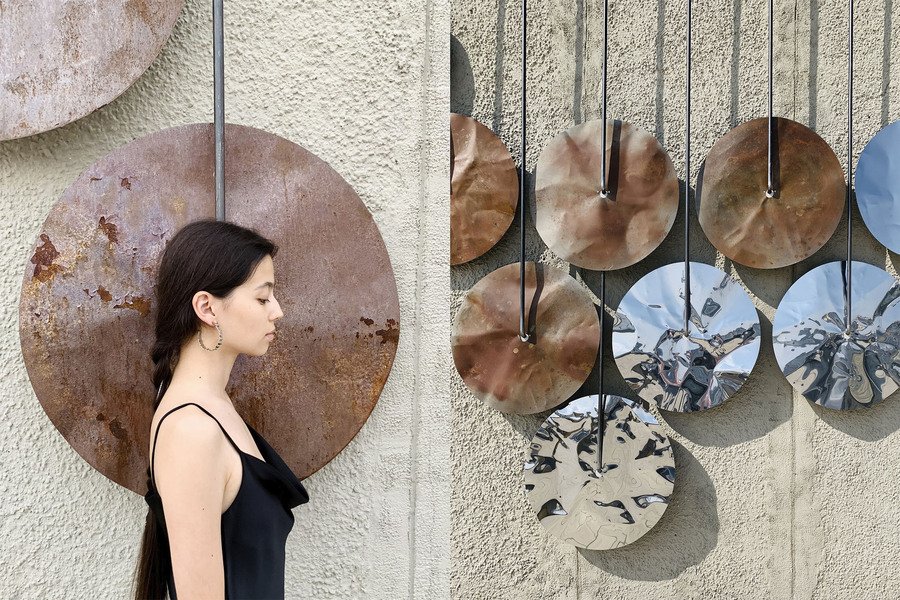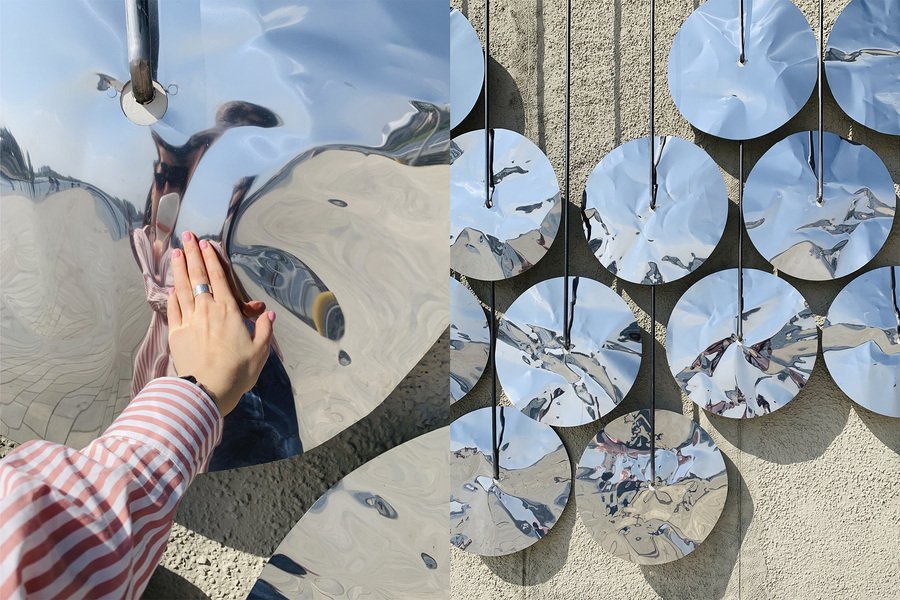 С инсталляцией можно взаимодействовать — дотрагиваться, создавать движение маятника, извлекать звуки, наблюдать за отражениями на неровной поверхности металла. У зрителя есть свобода воспринимать арт-объект по-разному, в зависимости от личных ощущений и переживаний здесь и сейчас.