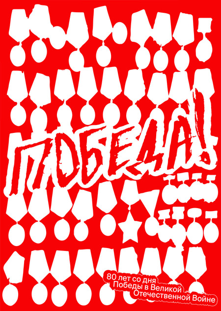 Ордена и медали — ключевые понятия, от которых должна была строиться идея плаката. Награды предшествующих поколений выложены на одном полотне друг с другом и напоминают нам о Великой Победе.
