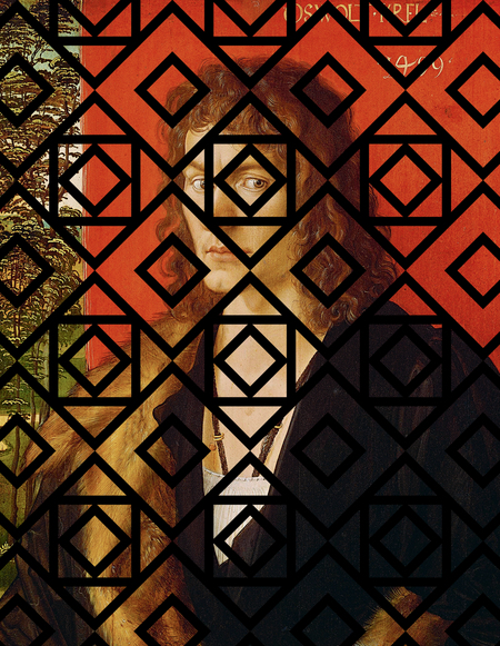 На развороте представлены три портрета кисти Дюрера. Портрет венецианки 1505 года аналогичен стилю, в котором написан Портрет Освальда Крела 1499 года. В Портрете молодой женщины 1506–1507 годов стиль смягчился, здесь преобладают контрастные сопоставления света и тени. При сравнении с двумя более ранними картинами этот портрет выглядит иначе — гораздо более реалистично. Дюрер очень интересовался технологией создания изображений. Я подозреваю, что он познакомился с оптическими устройствами между 1505 и началом 1507 года, когда был в Венеции.