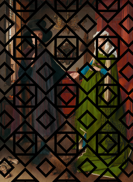 Это Портрет четы Арнольфини кисти ван Эйка 1434 года. Я восхищался этой картиной больше, чем другими, и снова и снова возвращался в музей, чтобы взглянуть на нее. На картине есть выпуклое зеркало. Если бы вы нанесли серебрение на другую сторону и затем перевернули зеркало — это и есть все оптическое оборудование, которое вам понадобилось бы для создания подробного и жизнеподобного изображения деталей на картине.
