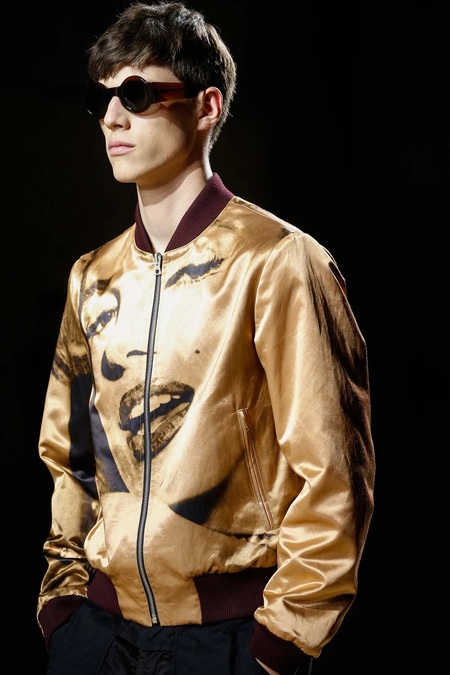 Картина бельгийского экспрессиониста Леона де Смета встречает посетителей в богато украшенном дубовом вестибюле Дриса / Золотой бомбер из коллекции Dries Van Noten S/S 2016 посвященнной Мэрилин Монро
