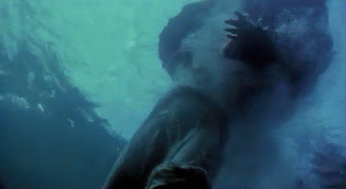 Платье на фото выше тоже рассказывает историю. Оно скроено так чтобы прилегать к телу и формировать складки, как будто ее раздувает под водой, а принт trompe l’oeil спереди создает впечатление мокрой ткани.
