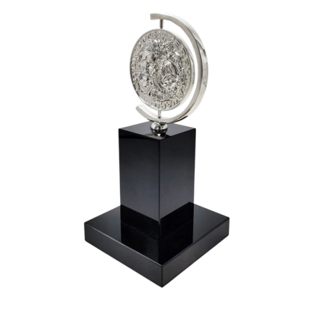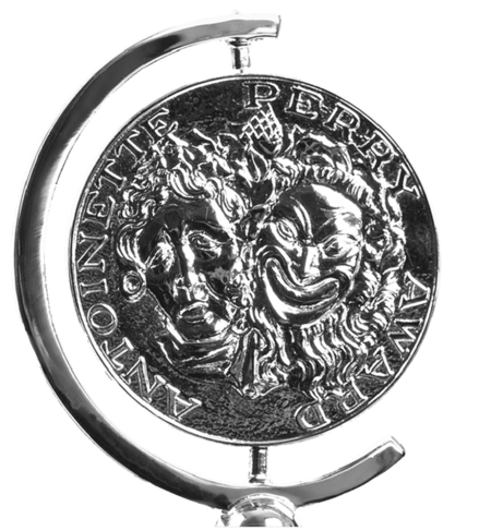Театральная премия «Тонни» представляет собой медальон с изображением символических театральных масок комедии и трагедии.