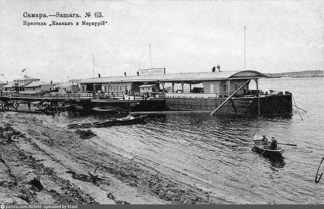 В 50-х годах XIX века в Самаре возникли так называемые пароходные общества. Название самого первого из них носило имя реки — «По Волге», затем к нему присоединились пароходные общества «Самолёт», «Кавказ и Меркурий», «Русь» и др. Владельцы судов договорились, чтобы каждая компания имела свою собственную группу названий, чтобы можно было легко узнать, к какому обществу принадлежит то или иное судно. Каждое общество также было обязано построить свою пристань. Среди них были особые причалы купеческого общества, а также казенные, которыми могли пользоваться на правах аренды.