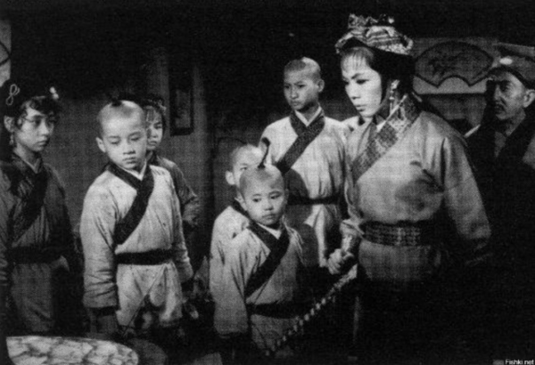 Джеки Чан в середине кадра в фильме Лун Тхоу «Большой и маленький Вонг Тин Бар» 1962 года. На фото снизу актёр Саммо Хун.