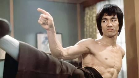 1)Джеки Чан в кадре фильма «Духовное кунг-фу» 1978 года 2)Брюс Ли в кадре фильма «Брюс Ли: Путь воина» 2000 года.