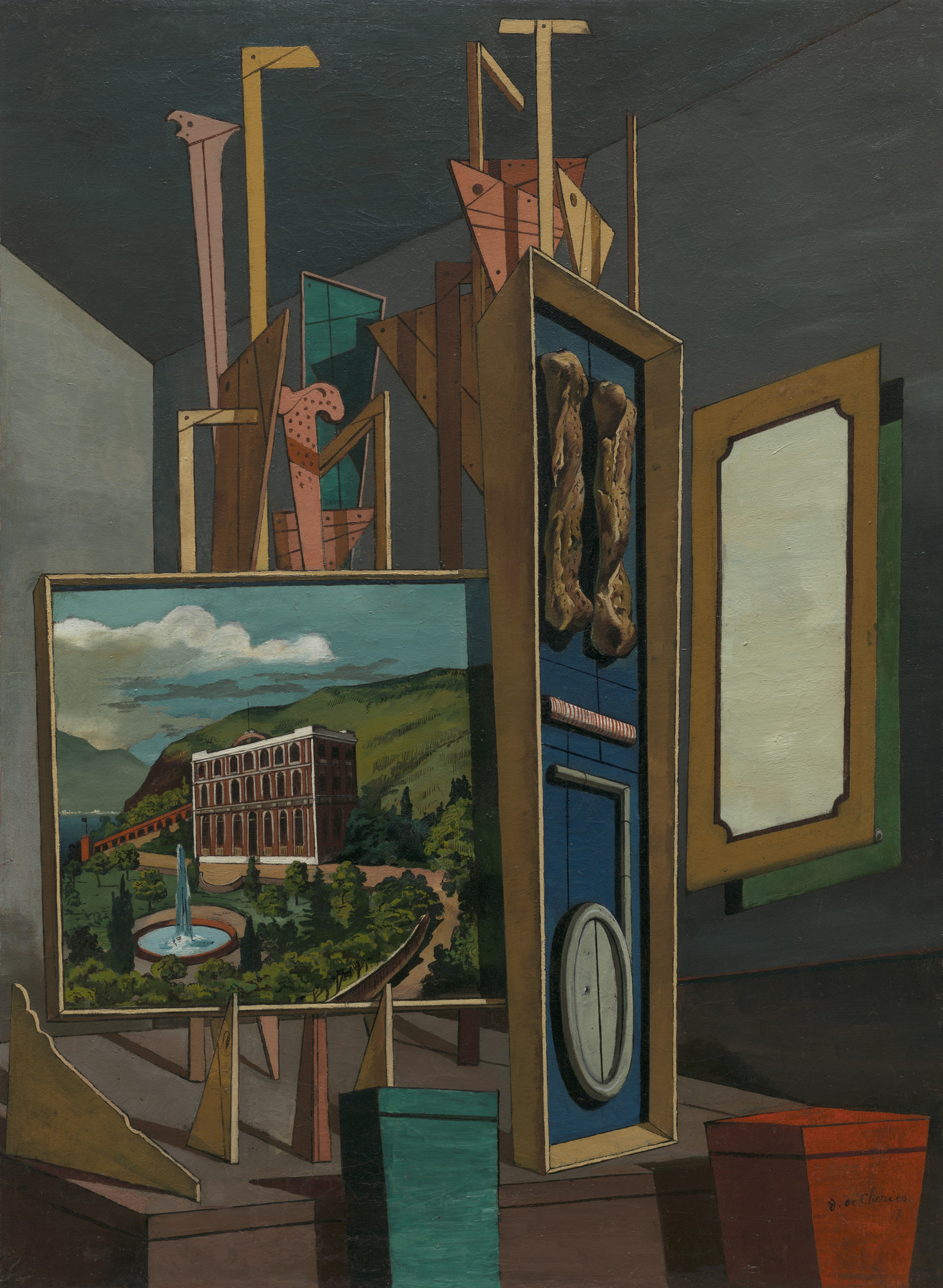 Джорджо де Кирико. Меланхолия отъезда. 1916 // Джорждо де Кирико. Большой метафизический интерьер. 1917