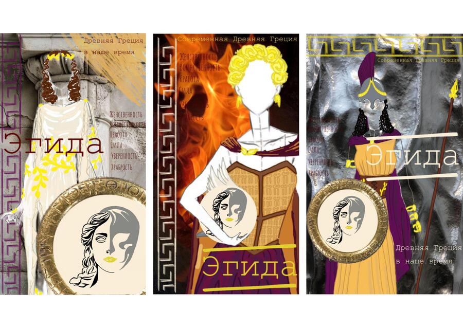 Эгида, как символ защиты, волшебного щита, власти и покровительства, отражает концепцию проекта — возможность быть элегантной и нежной, но не беззащитной, а с прочным внутренним стержнем, храбрым сердцем и чистым разумом.