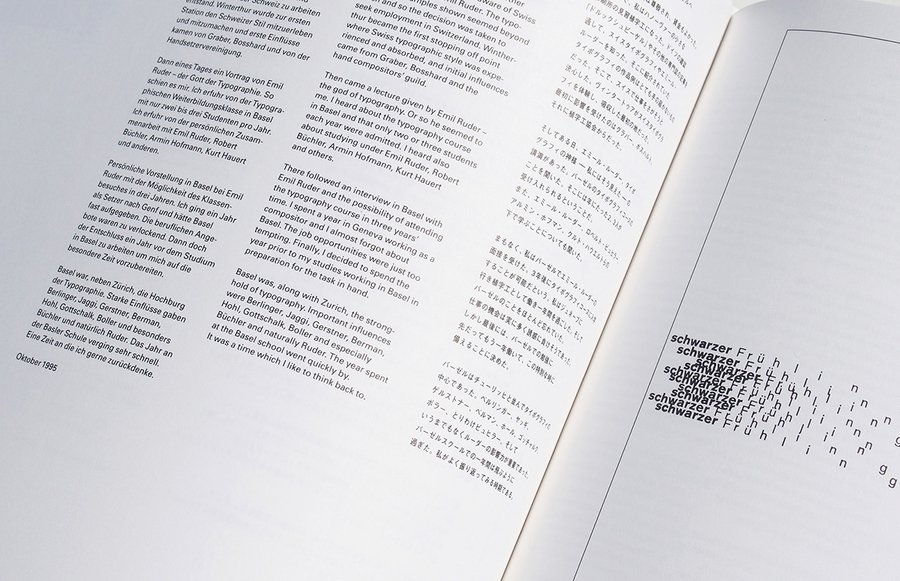 Сборник размышлений о типографике, составленный учениками Эмиля Рудера. Издатель: Helmut Schmid Design совместно с издательством Robundo Publishing Inc. Токио, 1997. 96 стран