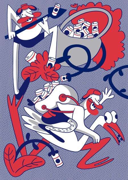 Серия иллюстраций для Pabst Blue Ribbon Bier. В проекте раскрыта тема ярких эмоций и веселья для этого я разработала персонажа, который попадает в разные абсурдные ситуации, пока собирает пиво, растущее на деревьях. Для большего погружения в шуточную атмосферу «необычных будней» в каждой иллюстрации появляются необычные второстепенные персонажи, взаимодействующие с главным героем.