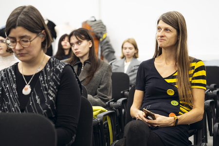 Модерировала дискуссию Людмила Алябьева — академический руководитель Аспирантской школы по искусству и дизайну НИУ ВШЭ, кандидат филологических наук, шеф-редактор журнала «Теория моды: одежда, тело, культура», редактор книжной серии «Библиотека журнала „Теория моды“».