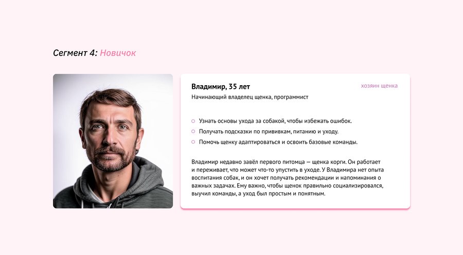 Целевая аудитория — люди с плотным графиком, но им важно, чтобы их питомец оставался здоровым и счастливым