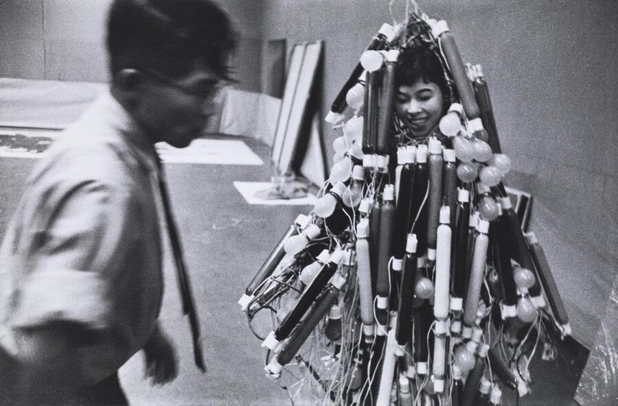 В начале XX века, с распространением электрификации футурист Филиппо Маринетти сразу же сделал себе галстук с лампочкой, позднее появился балет, где в костюмах танцовщиц были закреплены электрические лампочки, а Асуко Танака из японской группы «Гутай» сделала себе целое платье из ламп накаливания (Electric dress, 1956). Когда стали доступны телевизоры, Нам Джун Пайк сразу же сделал из них бюстгалтер и надел его на свою подругу и виолончелистку Шарлотту Мурман (TV Bra for Living Sculpture, 1969). Когда стала доступна радиоэлектроника, Кшиштоф Водичко создал устройство, которое предназначалось для ношения на голове и генерировало аналоговый звук, слышный только носителю устройства через специальные наушники (Personal Instrument, 1969). В этом проекте художник критически осмыслял авторитарную польскую политику и цензуру того времени.
