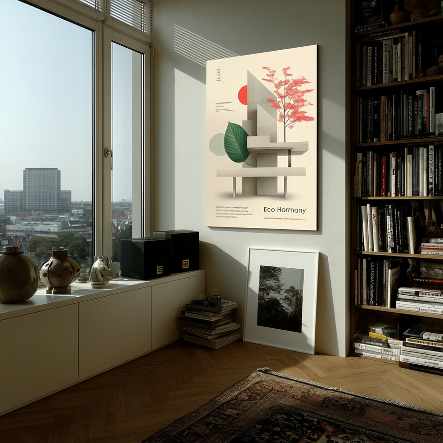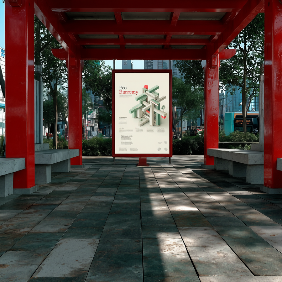 промт для блокнота- Hyper-realistic product photo of a pastel green notebook with the «EcoHarmony» logo, placed on an abstract background. The background features a minimalist geometric composition of light green Architecton shapes, elegantly framed and intersected by bold crimson red lines and rectangles in the Suprematist style. Soft, diffused studio lighting, top-down angle, sharp focus on the notebook with a subtle depth of field effect on the artistic background. 8K, professional product photography.