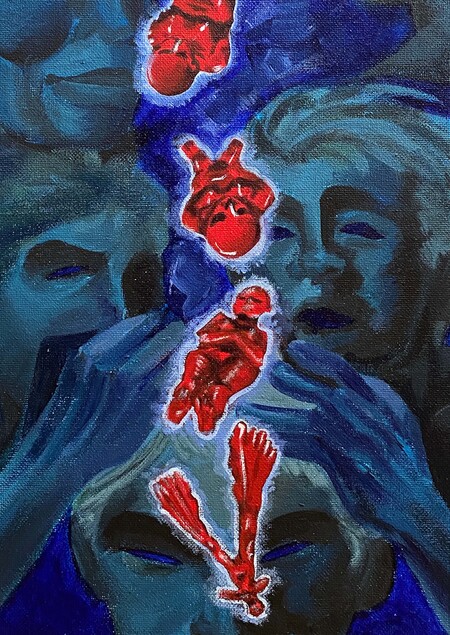 Проект «Не встающая девушка» представляет собой серию краской акриловой, рассказывающих вымышленную историю. С помощью которой поднимать голос о текущих явлений в обществе.
