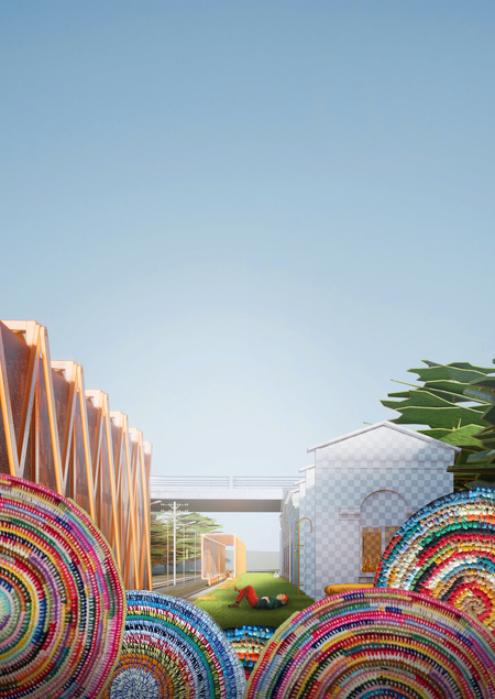 Дизайн выставки вдохновлен многообразием устройства дачных веранд, сложенных из ромбовидных форм.