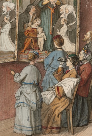 Альфред Рихард Дите. Общество при осмотре Мадонны Гольбейна, 1871, Гравюрный кабинет, Дрезден