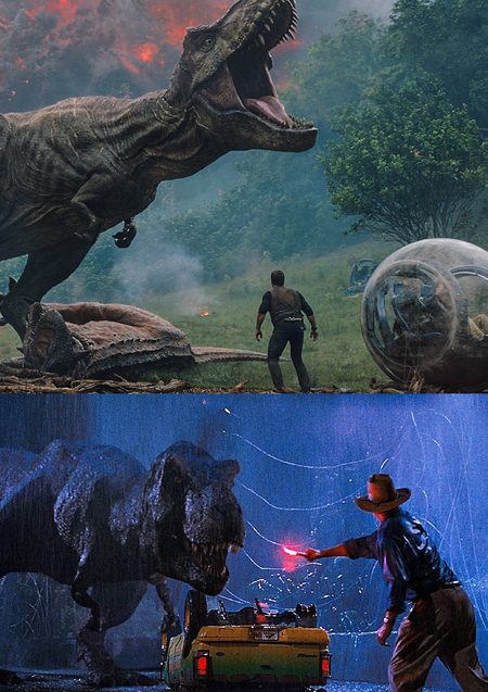 С появлением компьютерной графики процесс создания динозавров стал более доступным и удобным. Благодаря возможностям 3D-моделирования и анимации цифровые динозавры могут оживать на экране с потрясающим уровнем детализации. Например, в «Парке юрского периода» (1993) использование CGI стало революционным шагом, позволив зрителям увидеть динозавров в их естественной среде обитания с ранее недостижимым уровнем реализма. Однако использование аниматроников также остается актуальным и имеет свои преимущества. Аниматронные модели, как те, что были созданы для «Парк юрского периода», позволяют актерам взаимодействовать с динозаврами, придавая осязаемость и физическое присутствие, что делает изображение более правдоподобным и цельным.