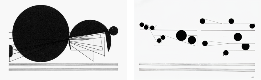 Дик Хиггинс, «Графис № 19» (Акт первый «Святой Иоанны в Боревуаре»), 1959; Дик Хиггинс, «Графис № 27» (Драма для резинового штампа и трафиков), 1959