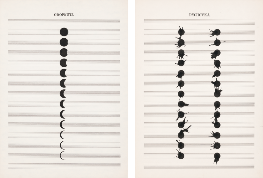 Чехословацкие художники, такие как Дезидер Тот, Милан Адамчяк и Милан Григарь также экспериментировали с музыкальными партитурами и создавали графические нотации, балансировавшие на грани между музыкой и визуальной поэзией.