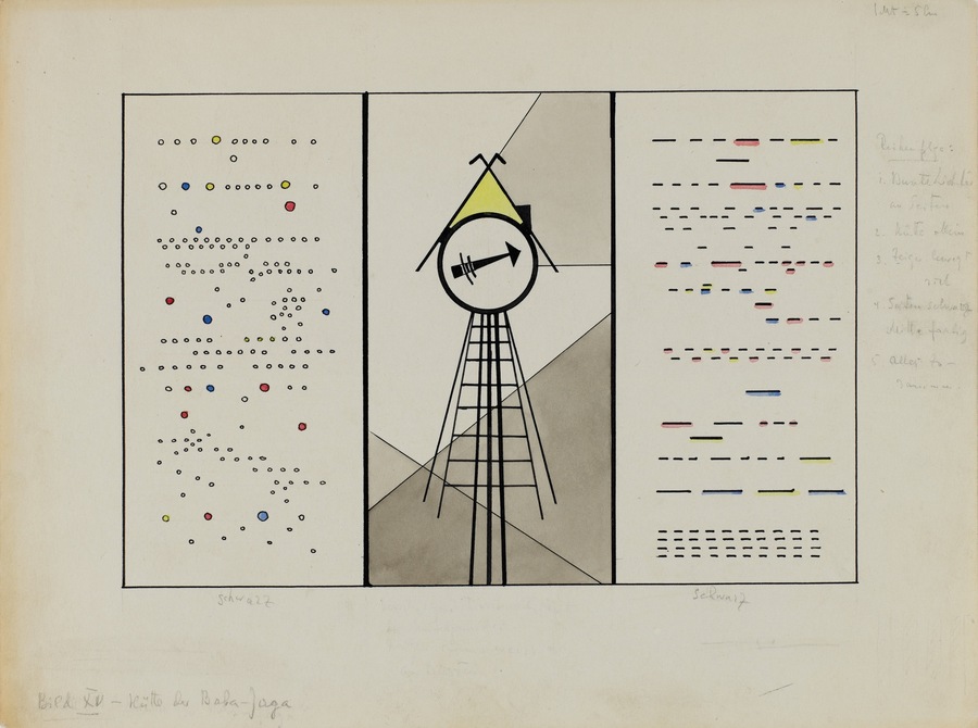Василий Кандинский, «Картина XVI» («Великие врата Киева»); «Картина XV» («Избушка Бабы-Яги»); «Картина XII» («Рыночная площадь в Лиможе»); «Картина IV» («Старый замок»); Картина XIII (Катакомбы), 1928