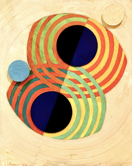 В знаменитой серии «Ритмы» Робер Делоне строил композицию на наложении и взаимопроникновении концентрических кругов и цветовых дуг. Эти работы функционируют как визуальные партитуры: плавные переходы между холодными и теплыми тонами вызывают ощущение гармонических созвучий, а ритмическое чередование форм создаёт на холстах эффект полифонии.