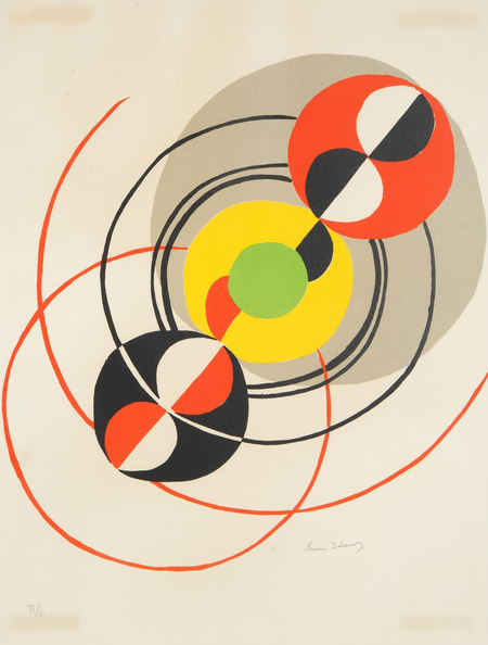 Робер Делоне, «Рельеф, Ритмы», 1932; Соня Делоне, Без названия из серии «Маэстро, музыку, пожалуйста», 1976