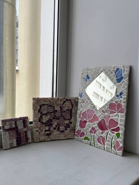 В данной работе представлены три мозаики: 1 из стекла и 2 из смальты. Созданные в мастерской мозаики показывают итог проделанной работы. «VESNA» — мозаика о расцвете весны. «COQUETTE» — грубое и нежное, но фактурное выражение кокетки. «ПОИСК» — блуждающий лабиринт.