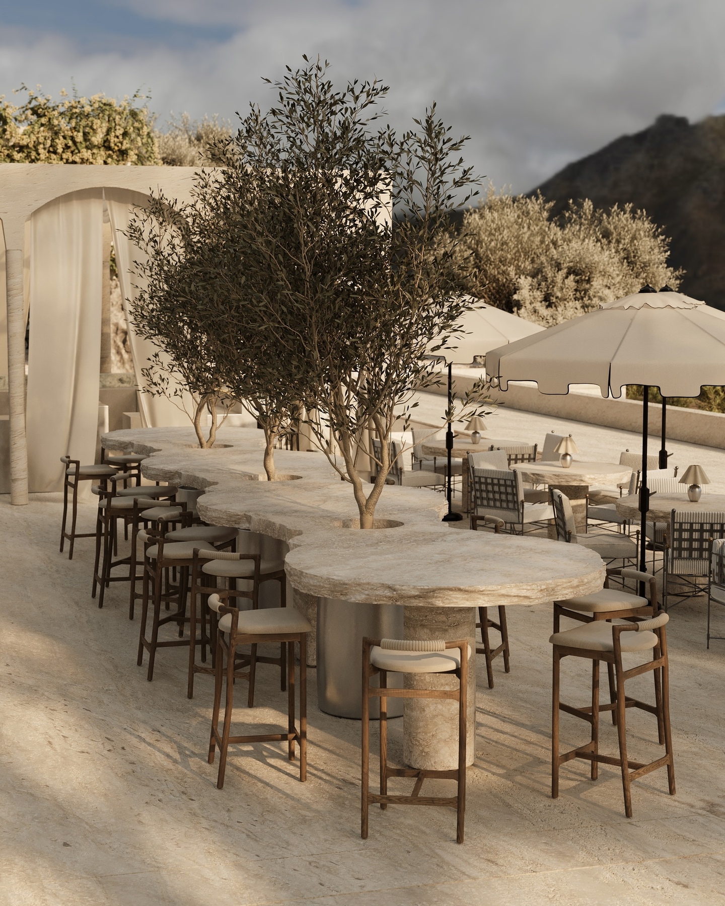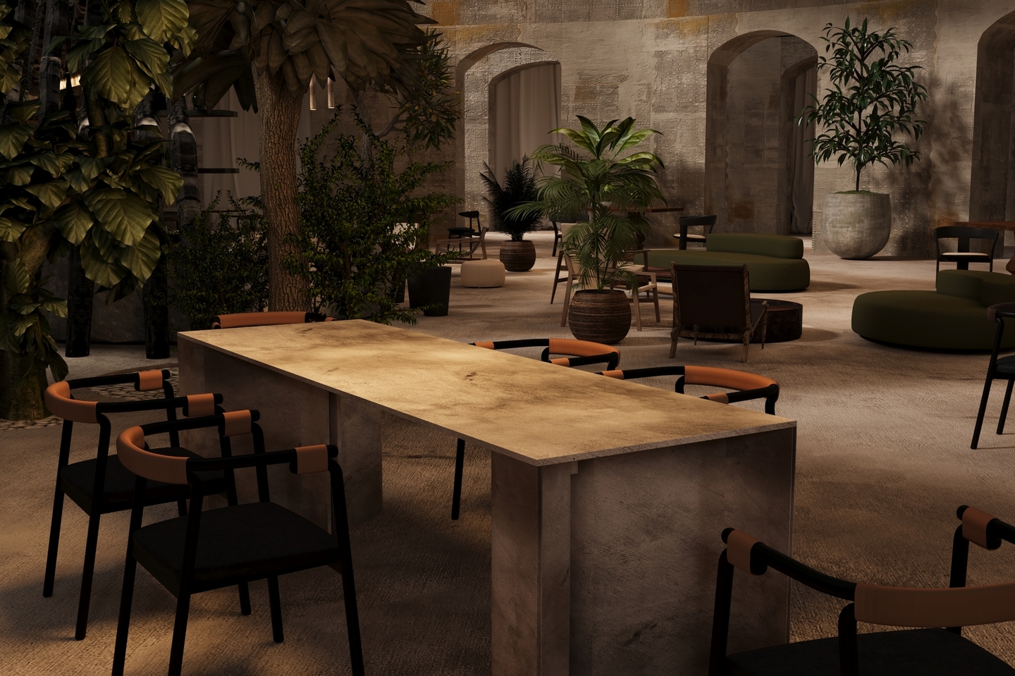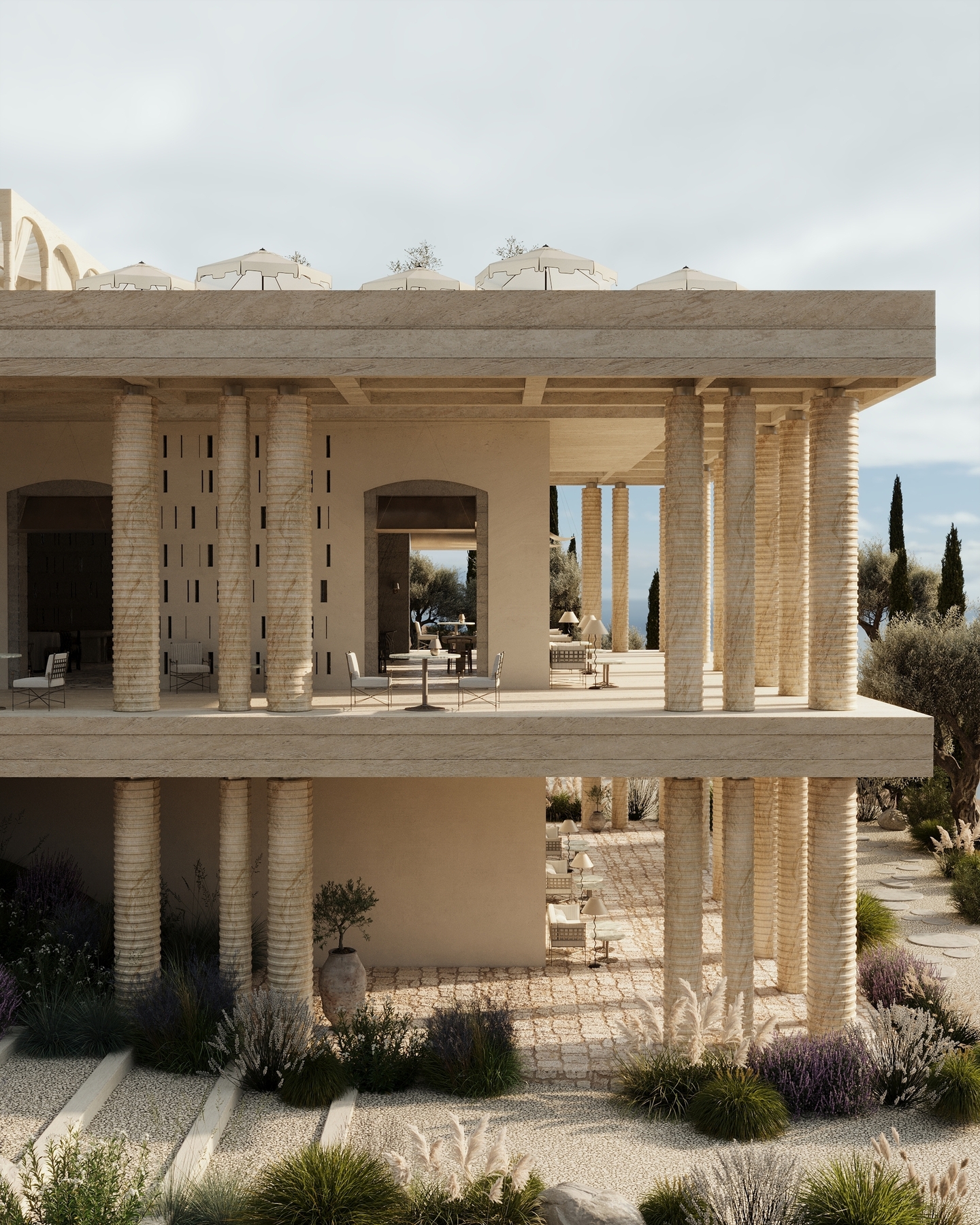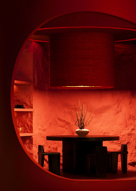 В проекте форма следует за окружающей средой. Источником образов стали меловые горы и их удивительная экосистема. В интерьерах много природных элементов и текстур. Некоторые из форм были созданы из частей кретофильных растений.