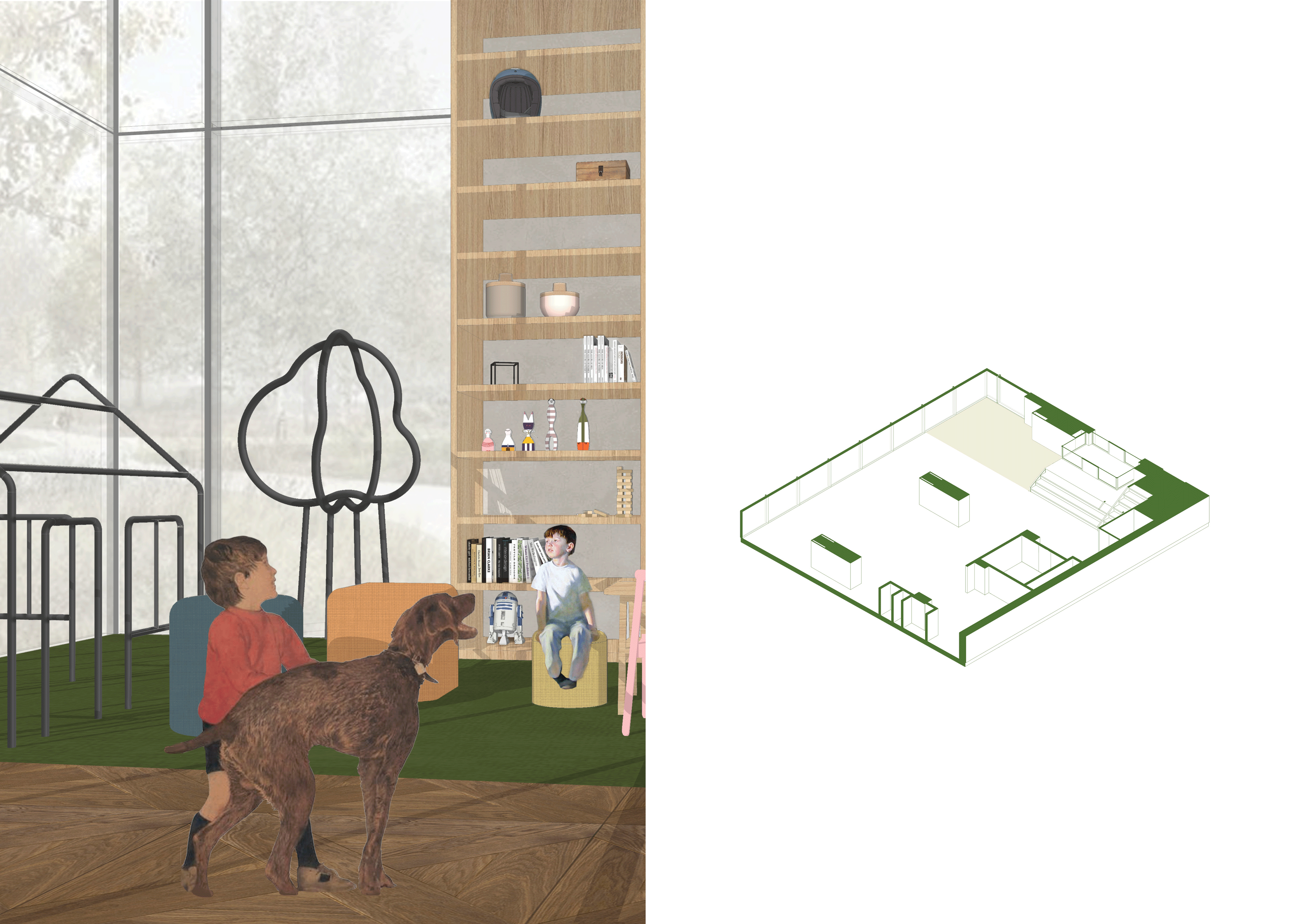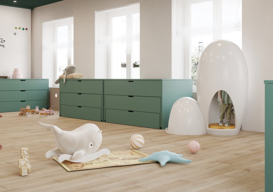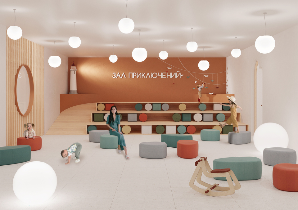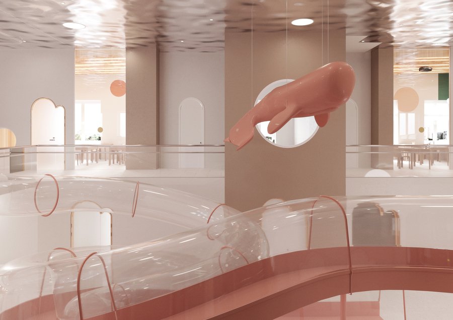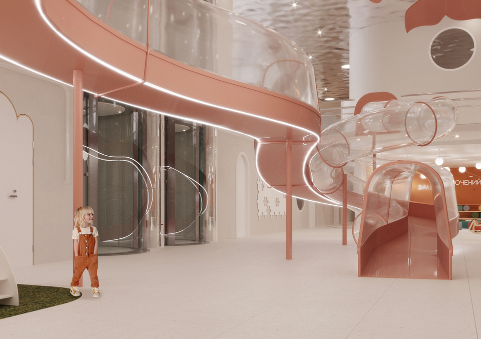Что такое мир глазами ребёнка? Это классики вместо тротуарной плитки, шалаш из стульев и одеяла, океаны вместо бассейна, пол — лава. В этом проекте основной целью было отразить видения ребёнка наяву, что позволит гостям, переступившим порог, попасть в невероятный подводный мир, где над головами парят киты, а водные горки проносят мимо них в назначенный пункт.