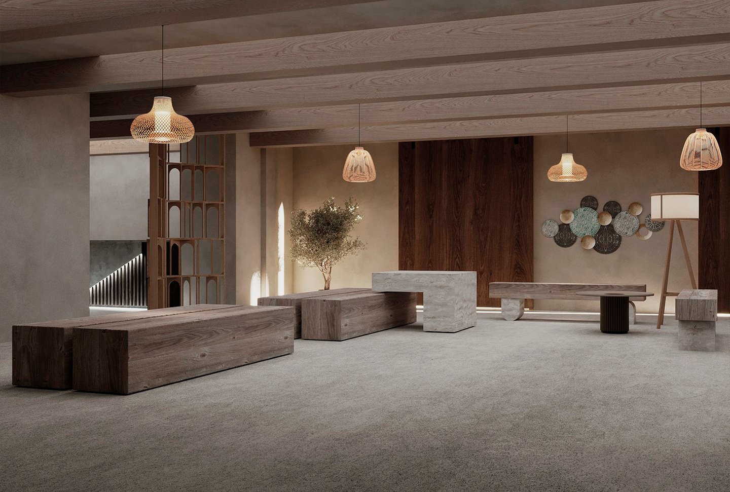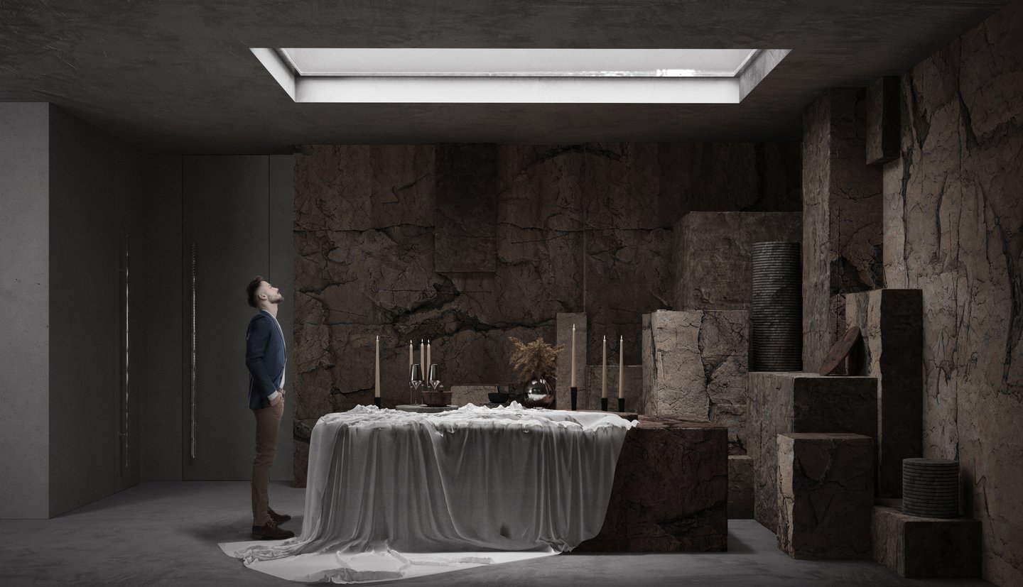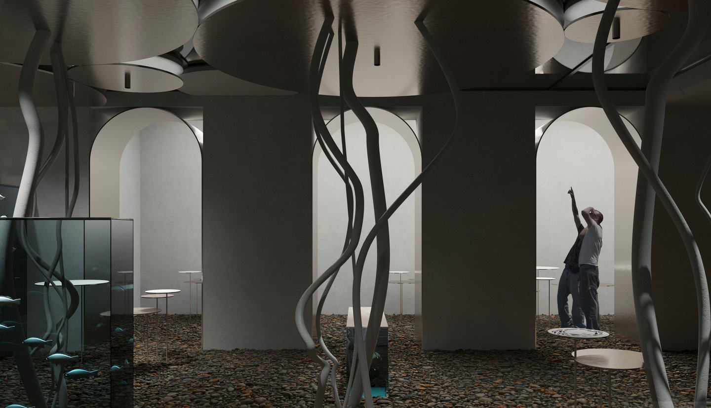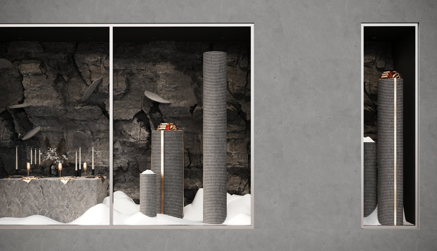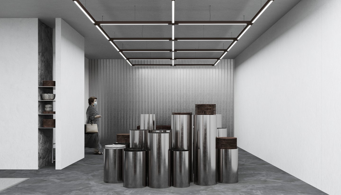 Проект представляет собой разработку концепции для двухуровневого магазина, специализирующегося на продаже посуды из природного камня.