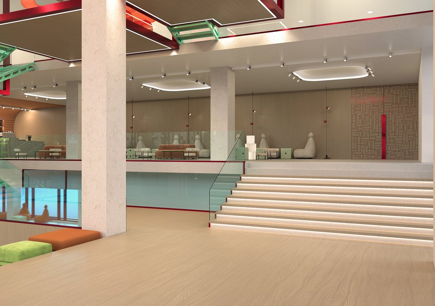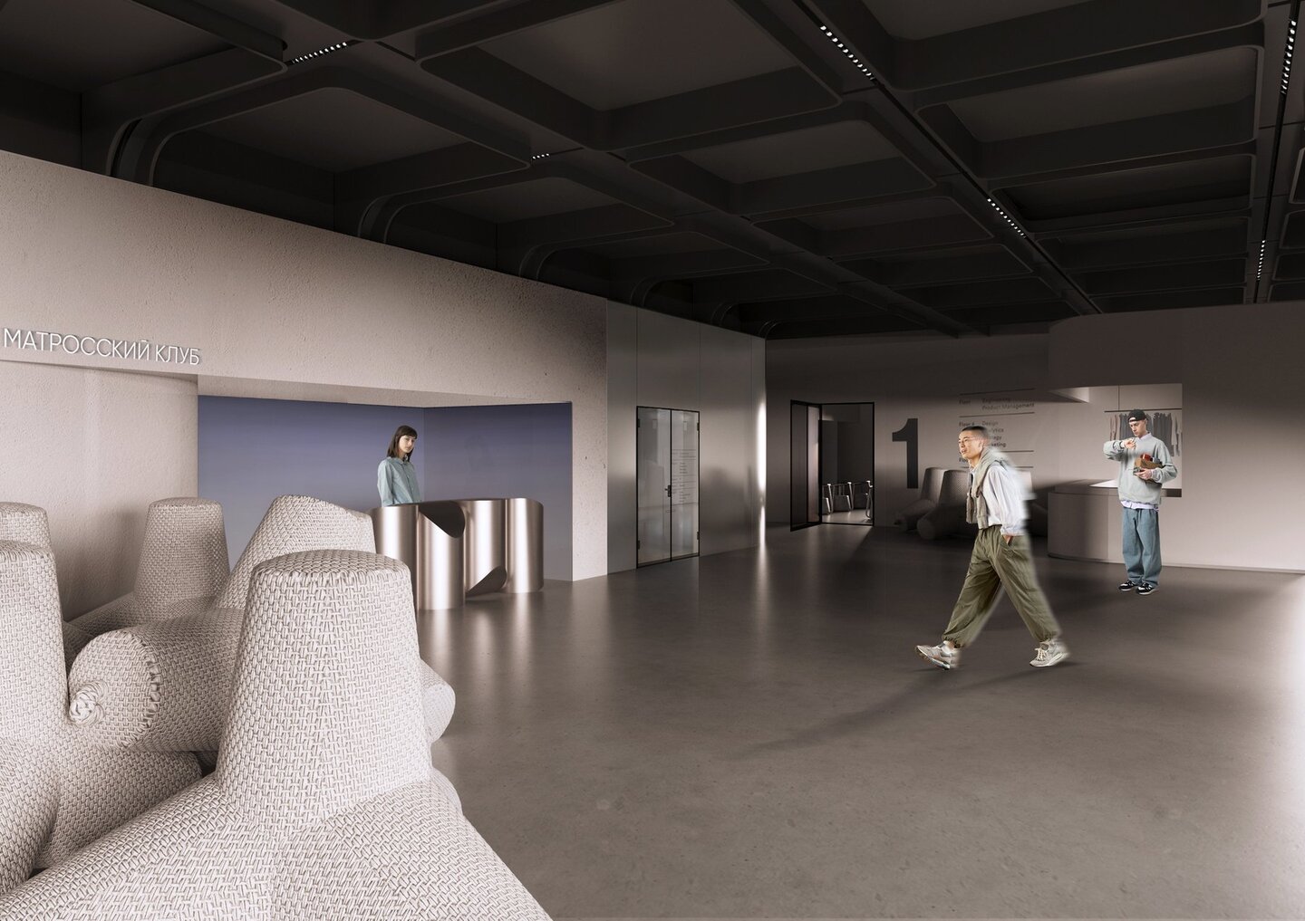 «Sound space: rhythm» — это музыкальное молодежное пространство. Название отсылает как к музыкальному понятию, так и к композиционному термину, который встречается в интерьере.