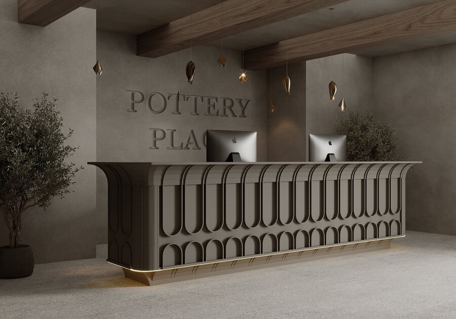 «POTTERY PLACE» — креативное пространство, которое вдохновит любого посетителя на реализацию даже самых необычных творческих идей в области гончарного мастерства. Пространство располагается на двух этажах Музея Москвы, в котором предусмотрено: две гончарные мастерские, кафе, лекторий, шоурум и многое другое. Стиль интерьера «Джапанди», где преобладают пастельные оттенки и натуральные материалы.