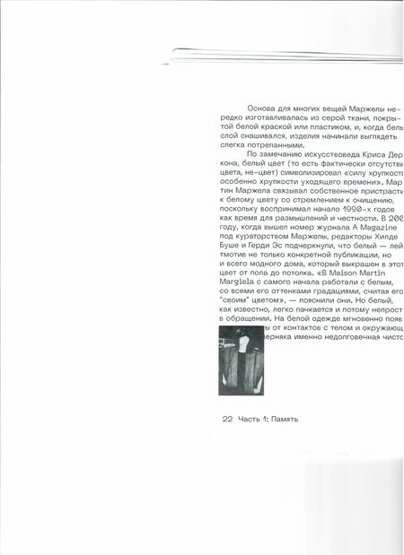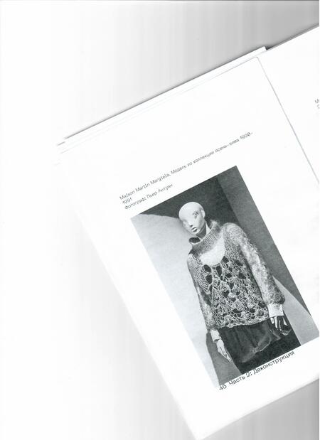 В книге рассказывается о деконструкции в одежде на примере модного дома Maison Martin Margiela