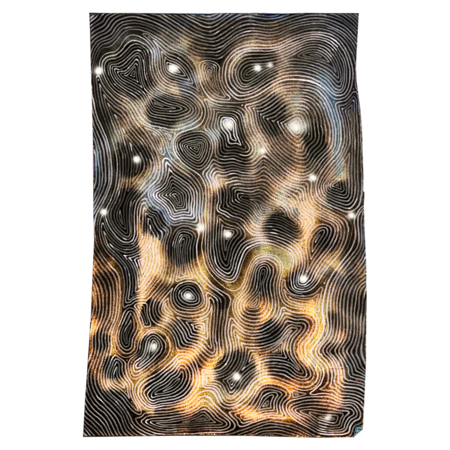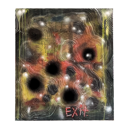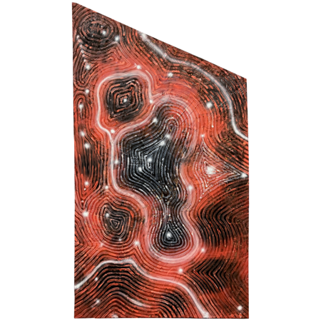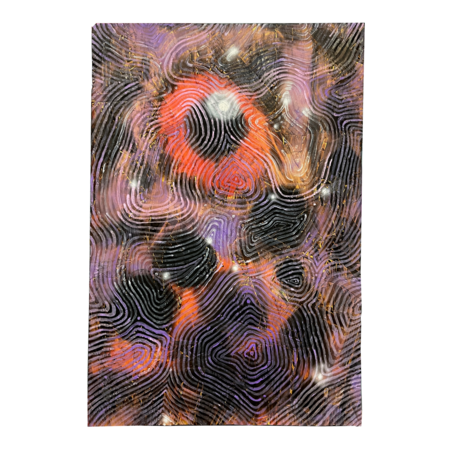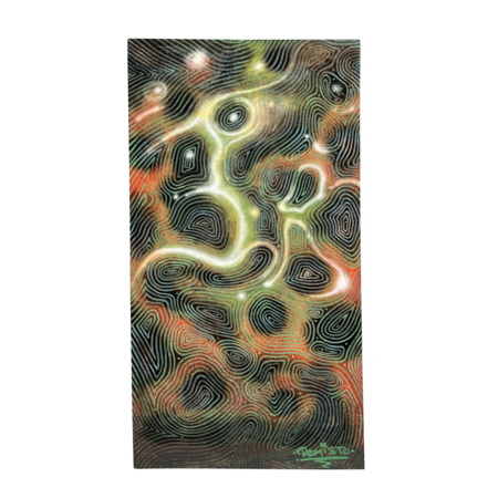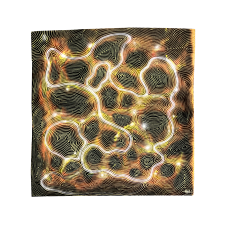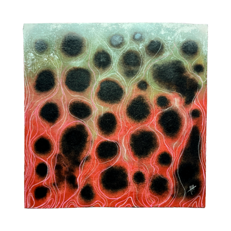 Wormway, 2023 / 56.5*56.8 cm / plywood, fire, oil, acrylic, spray