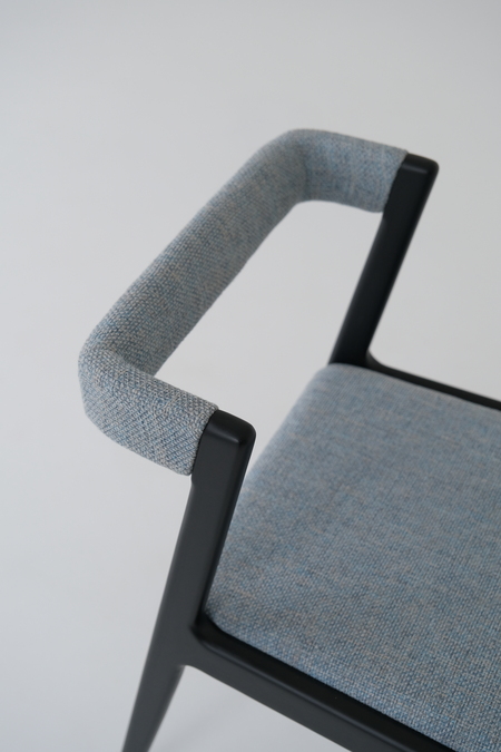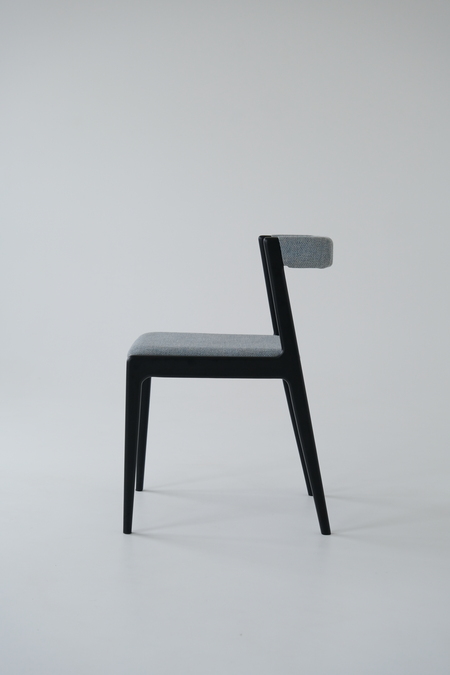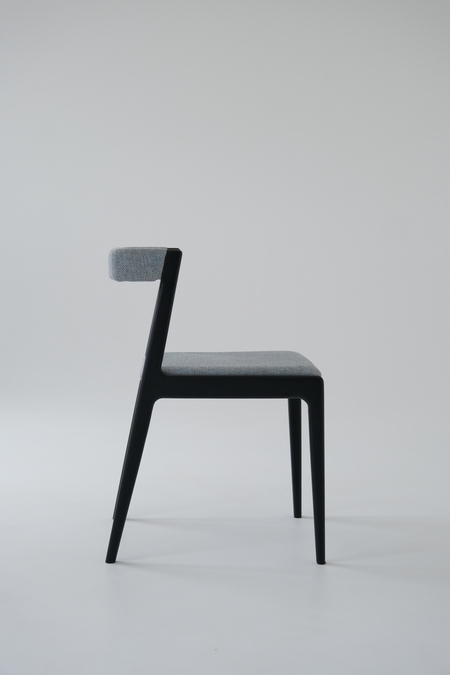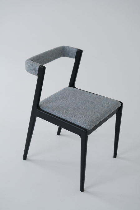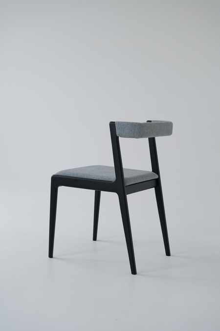 Каркас стула на фото изготовлен из массива бука с покраской в чёрную матовую эмаль. Это изделие является примером мастерской столярной работы. Разработка этого стула заняла около года.