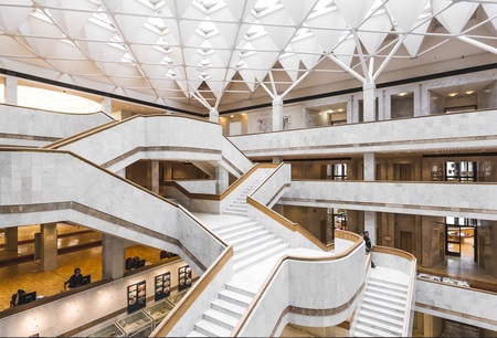 Интерьер Российской национальной библиотеки / руководители проекта В. Н. Щербин и Л. К. Варшавская / URL: https://pp.userapi.com/c638220/v638220344/3d123/Tf8R7Wtnli8.jpg (дата обращения: 15.05.2024)