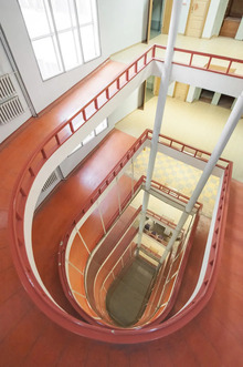 Лестница-пандус в Лабораторном корпусе МЭИ / архитекторы Л. Н. Мейльман, Г. Я. Мовчан / URL: https://media.admagazine.ru/photos/6140a1c8a9e02b1895e12d46/master/w_1600%2Cc_limit/800x1202_Quality97_DSC_1500.jpg (дата обращения: 15.05.2024)