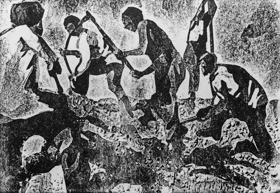 «Лагеря», 4/4, Гравюра на картоне, 28×19 см, 2024