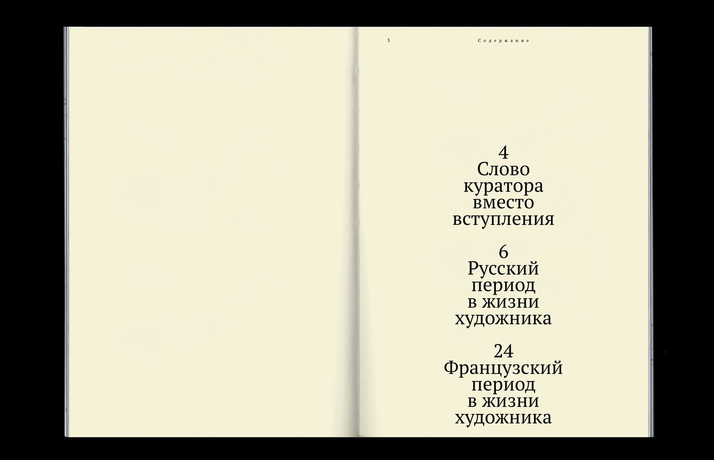 Данное книжное издание является каталогом работ художника к выставке. Состоит из двух частей: русский и французский период творчества. Принципы типографики отражают положение двух стран в первой половине 20 века.
