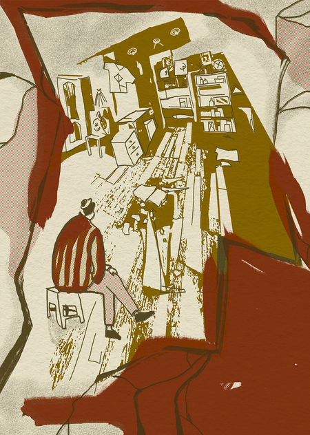 Серия иллюстраций для «Москвич Mag» посвящена повседневной жизни Москвы через призму творческого взгляда. Центральной темой стало пространство мастерской художника Валерия Корчагина — не просто место работы, а лаборатория и дом, в котором быт и творчество сливаются в единое целое.