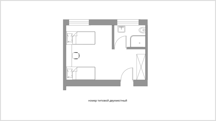 Двуместный номер предназначен для размещения взрослых людей, которые приезжают на конференции и образовательные сессии