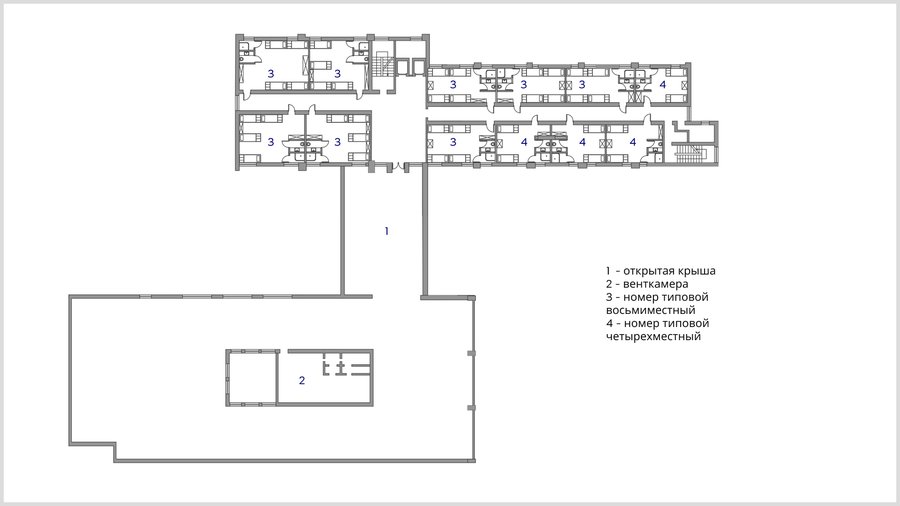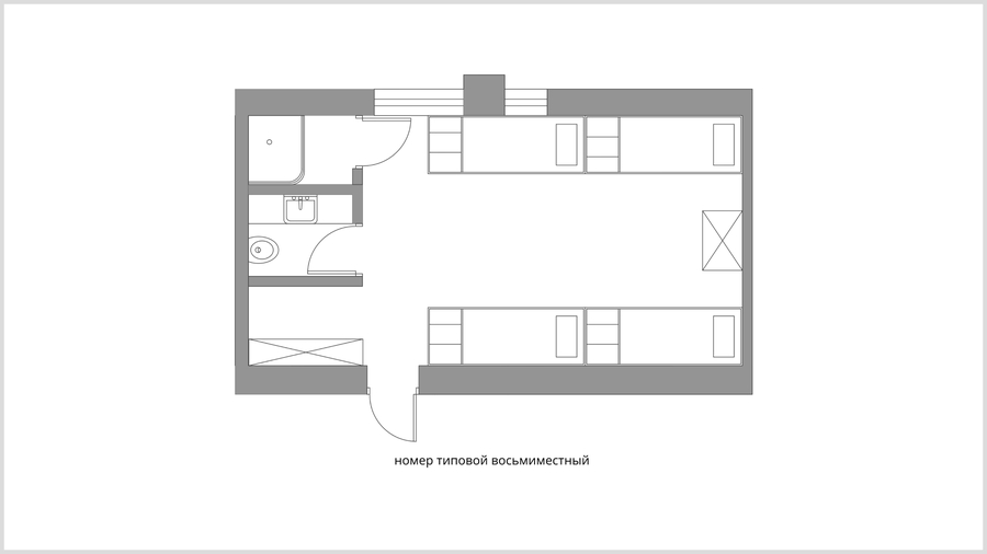 Большой номер на восемь человек предназначен для размещения школьников и подростков, которые принимают участие в хакатонах или написании финальных этапов олимпиад